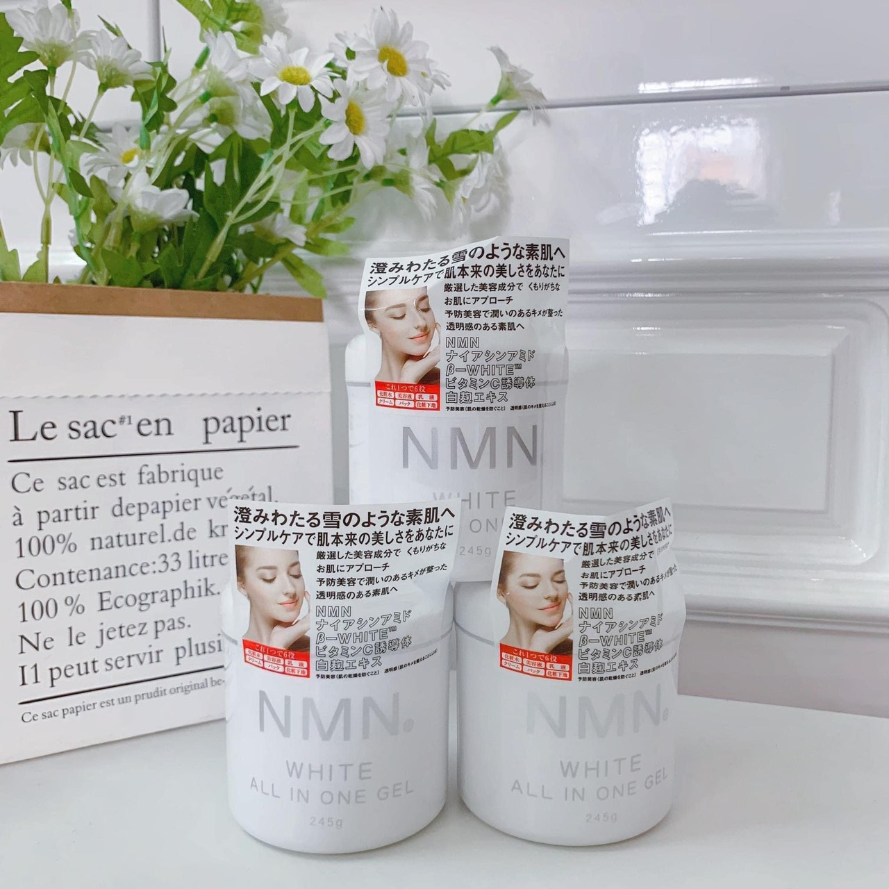 Gel dưỡng ẩm và trắng da NMN White All In One là sản phẩm chăm sóc da vượt trội đến từ Nhật Bản, sản phẩm với các công dụng kép giúp dưỡng da trắng sáng, cấp ẩm và ngăn ngừa lão hóa hiệu quả. Với kết cấu gel mỏng nhẹ, sản phẩm thẩm thấu nhanh, không gây bết dính. Gel dưỡng da NMN All In One là sản phảm lý tưởng đến bạn nuôi dưỡng làn da trắng sáng, mịn màng mỗi ngày.