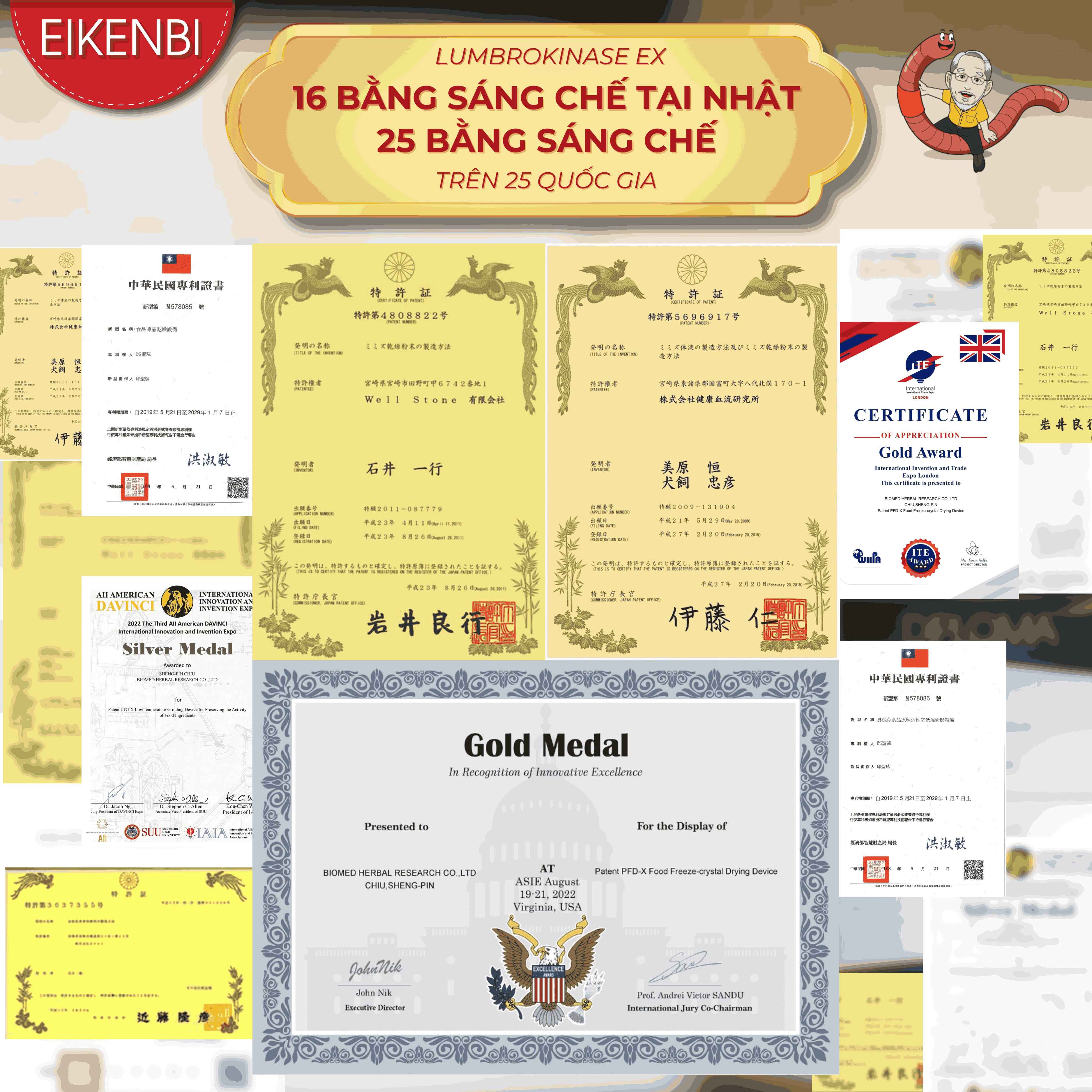 Lumbricus Rubellus (SKIII) được Eikenbi sử dụng để điều chế Lumbrokinase. Enzyme fibrinolytic trong Lumbrokinase có khả năng phân hủy fibrin gấp 4 lần fibrin tự thân, giúp tiêu cục máu đông hiệu quả. Hệ enzyme độc quyền này đã được cấp hơn 16 bằng sáng chế tại Nhật Bản và 25 bằng sáng chế quốc tế, khẳng định giá trị khoa học cũng như mức độ an toàn – hiệu quả vượt trội của sản phẩm trên thị trường quốc tế.